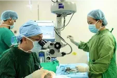 ▲白內(nèi)障專科學科帶頭人張廣斌為患者手術