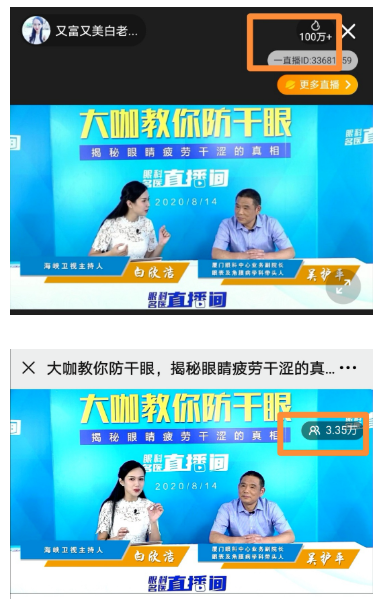 早在直播開始前三天,活動就已形成火爆預(yù)熱,直播觀眾涵蓋上班族、手機刷屏黨、化妝人士、司機、老年人等干眼常見群體,現(xiàn)場除了眼科大咖帶來的精彩干貨,還有價值10800元的lipiflow干眼治療分享禮、眼健康大禮包、干眼治療優(yōu)惠、干眼檢查優(yōu)惠等萬元豪禮。