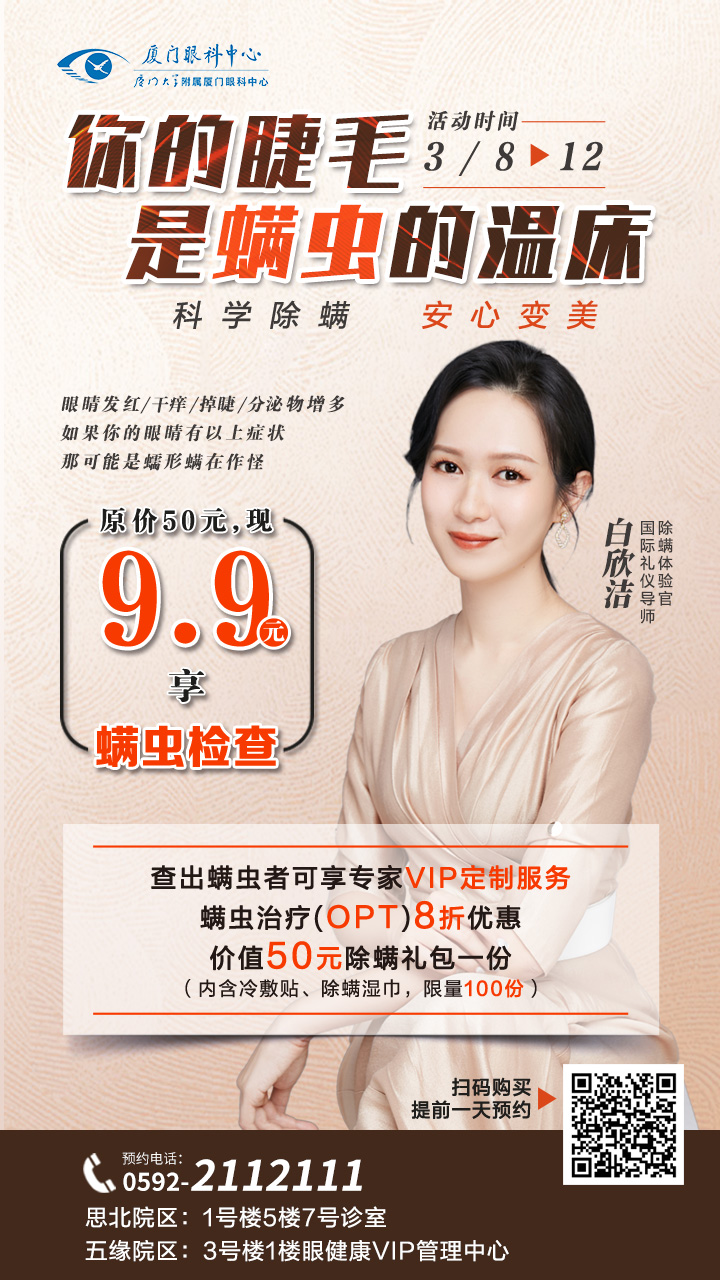 查出螨蟲者可享專家VIP定制服務,螨蟲治療(OPT脈沖激光)8折優(yōu)惠。