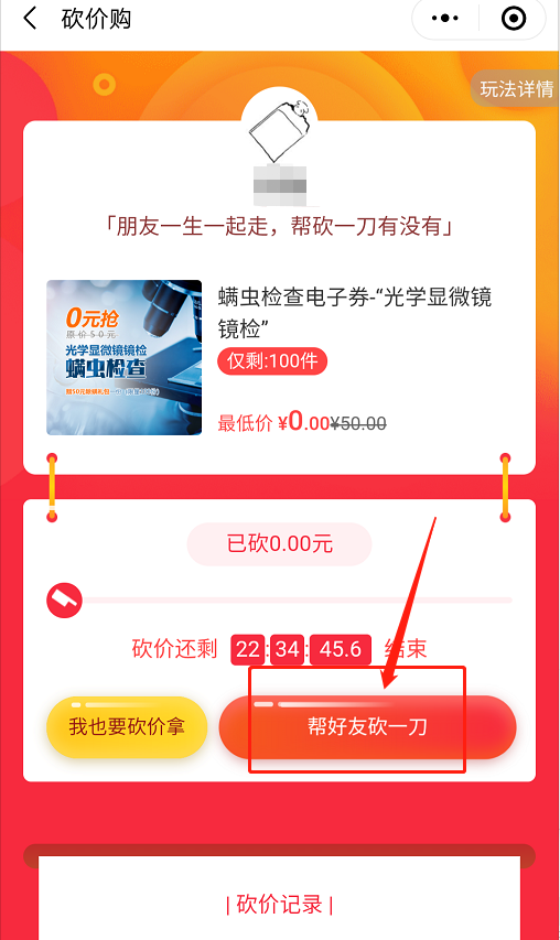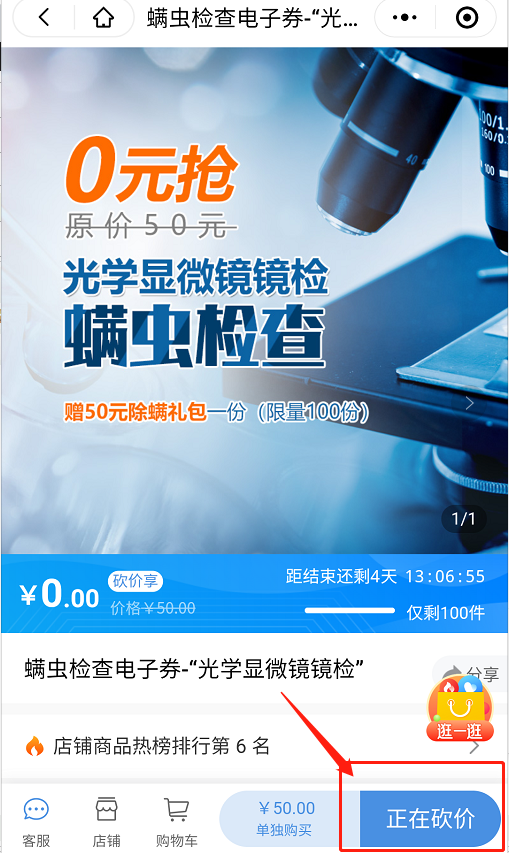 2、邀請10人助力砍價,可0元購螨蟲鏡檢