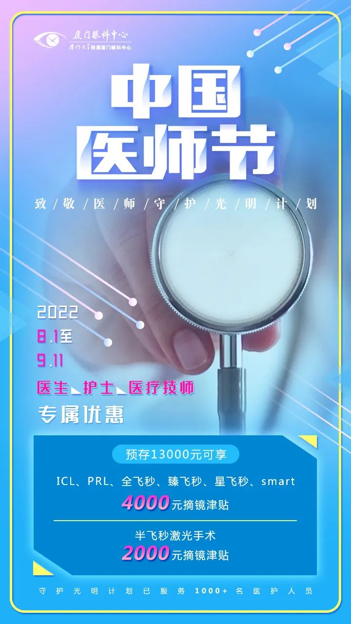 對(duì)近視手術(shù)的了解越深入,看著一批一批來做近視手術(shù)的患者,小王“想摘鏡”的念頭就更加蠢蠢欲動(dòng)了,畢竟小王也完全受夠了與眼鏡相互折磨的日子。但小王一直自認(rèn)是一個(gè)很有“儀式感”的人,因此,他還在等待。他在等一個(gè)專屬于醫(yī)生的特殊的節(jié)日——“中國醫(yī)師節(jié)”。