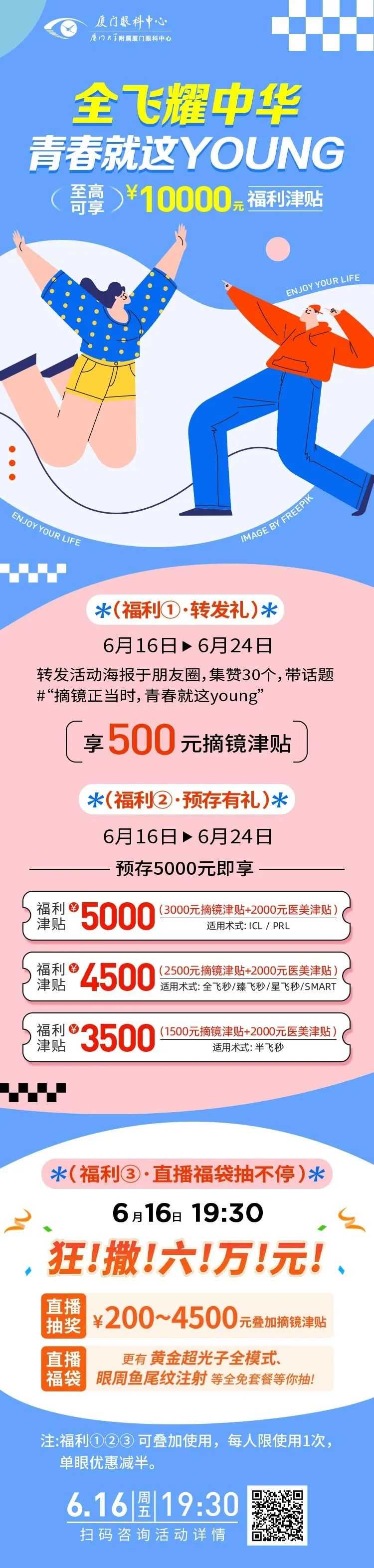 6月16日19:30,觀看直播抽至高4500元摘鏡津貼,還有驚喜醫(yī)美項目、小米充電寶、電動牙刷等好禮。