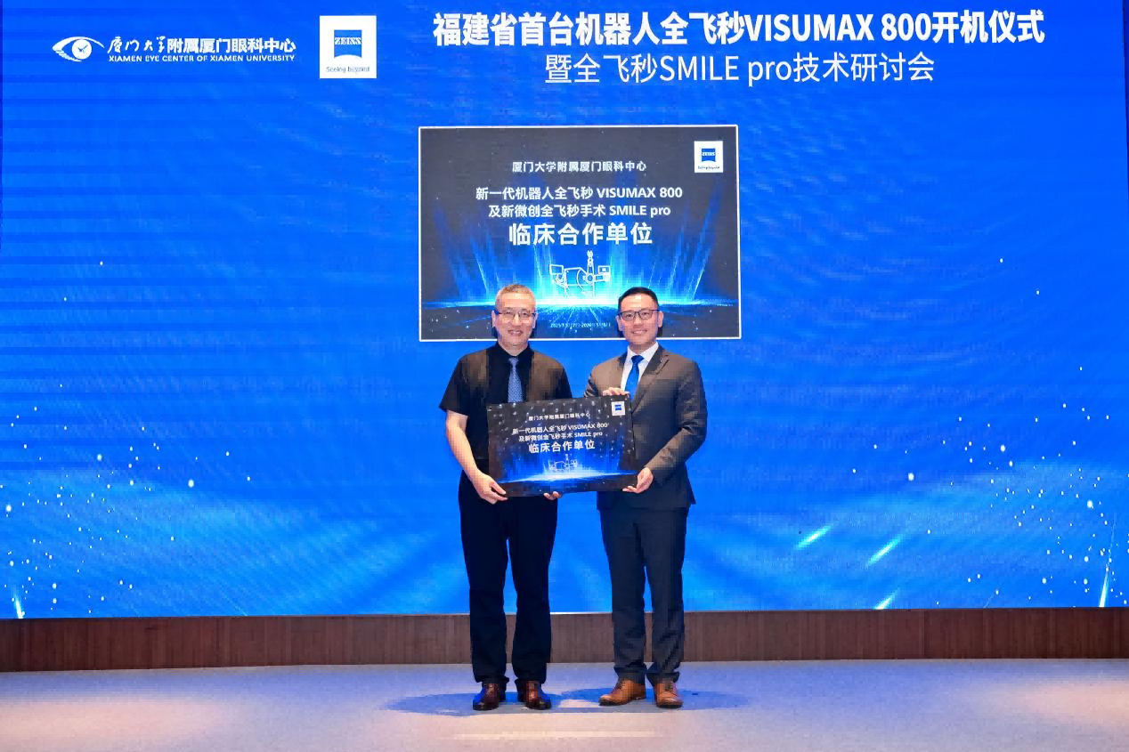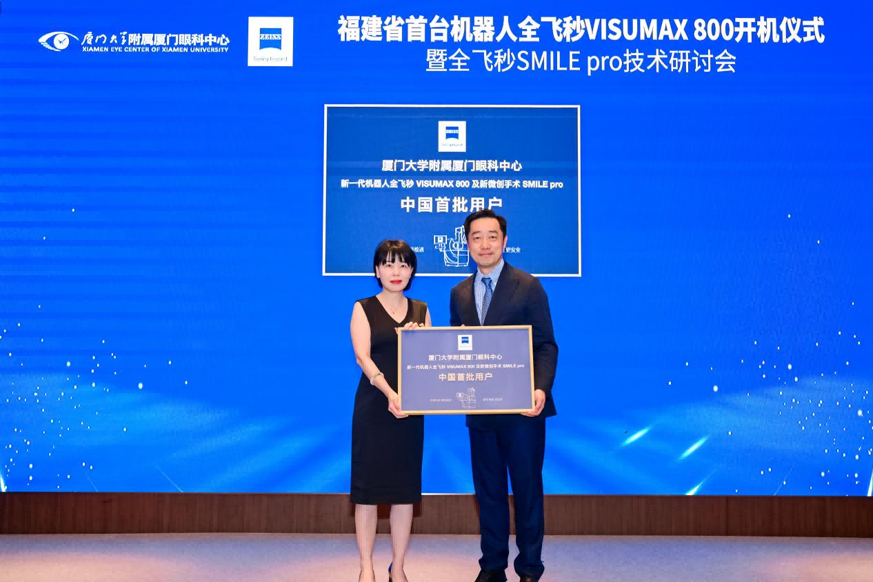 值得關(guān)注的是,廈門眼科中心憑借行業(yè)領(lǐng)先優(yōu)勢,成為“蔡司新一代機(jī)器人全飛秒VISUMAX 800及新微創(chuàng)手術(shù)SMILE pro中國首批用戶”及“蔡司新一代機(jī)器人全飛秒VISUMAX 800及新微創(chuàng)手術(shù)SMILE pro臨床合作單位”,在智能眼科診療領(lǐng)域持續(xù)領(lǐng)跑。