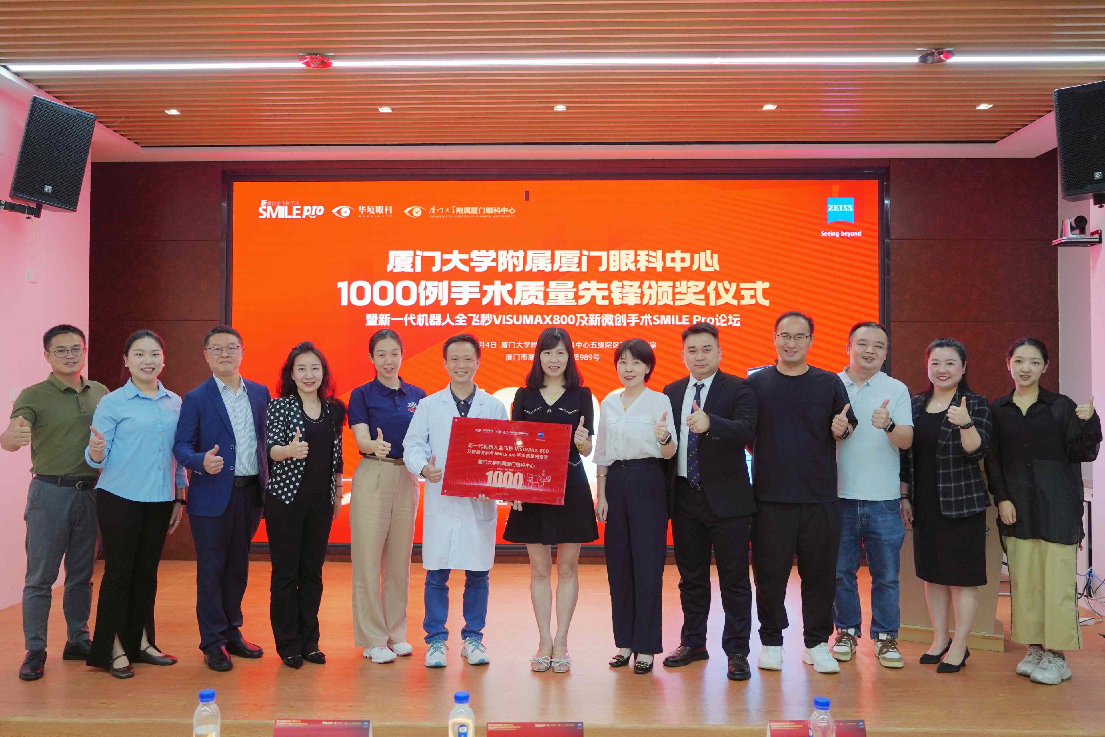 盛夏七月,鷺島生輝。7月4日,作為全國首家全飛秒SMILE pro手術量突破1000例的醫(yī)院,廈門眼科中心“1000例手術質(zhì)量先鋒頒獎儀式暨新一代機器人全飛秒VISUMAX800及新微創(chuàng)手術SMILE Pro論壇”在五緣院區(qū)成功舉辦。本次盛會不僅是廈門眼科中心屈光手術發(fā)展史上的重要里程碑,更是眼科醫(yī)療邁向智能化、精準化、微創(chuàng)化新紀元的強有力見證。