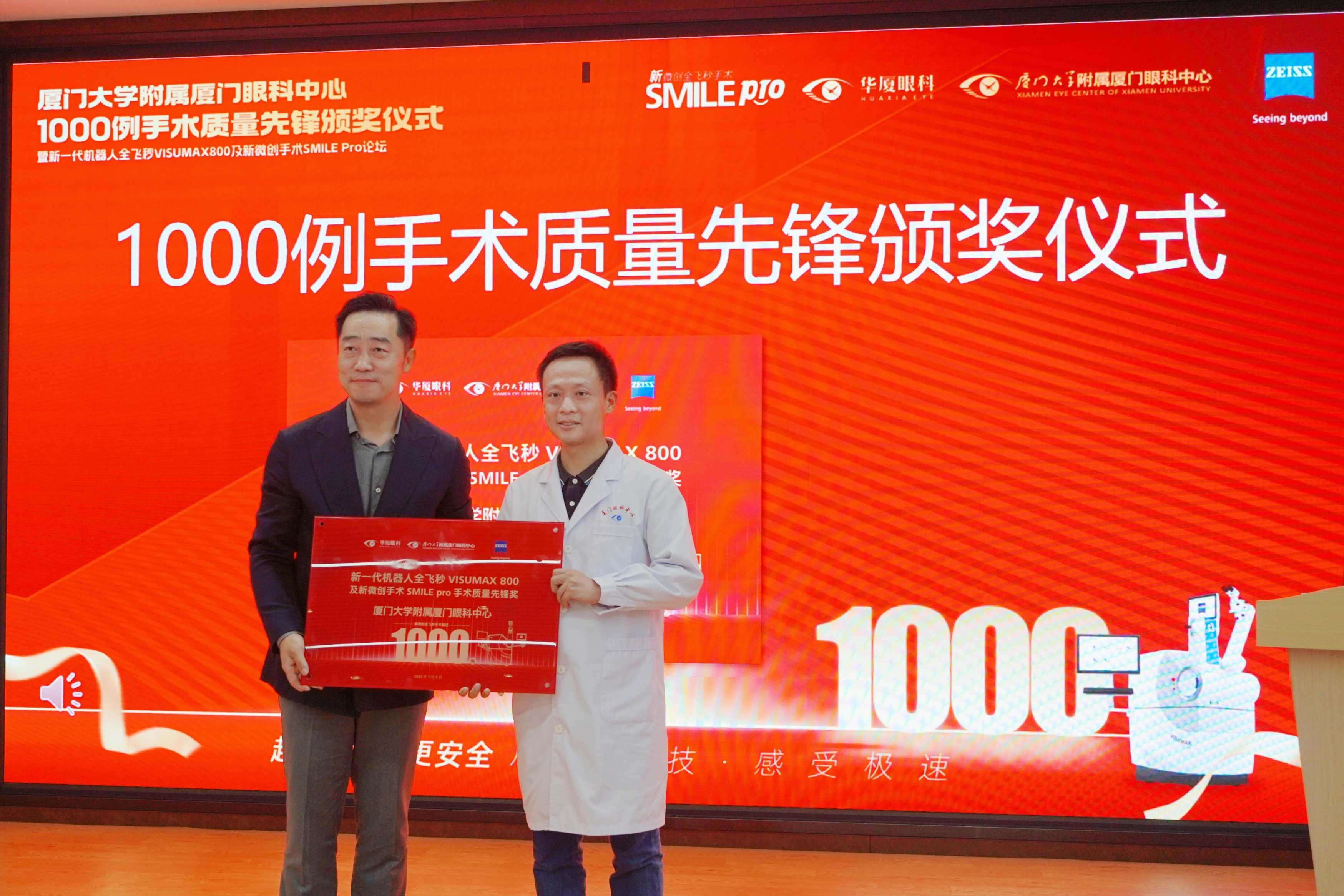 會議核心環(huán)節(jié),蔡司總部授予廈門眼科中心“SMILE Pro 1000例手術質(zhì)量先鋒獎”,這一殊榮是對廈門眼科中心在全飛秒SMILE Pro手術領域卓越成就的高度認可。