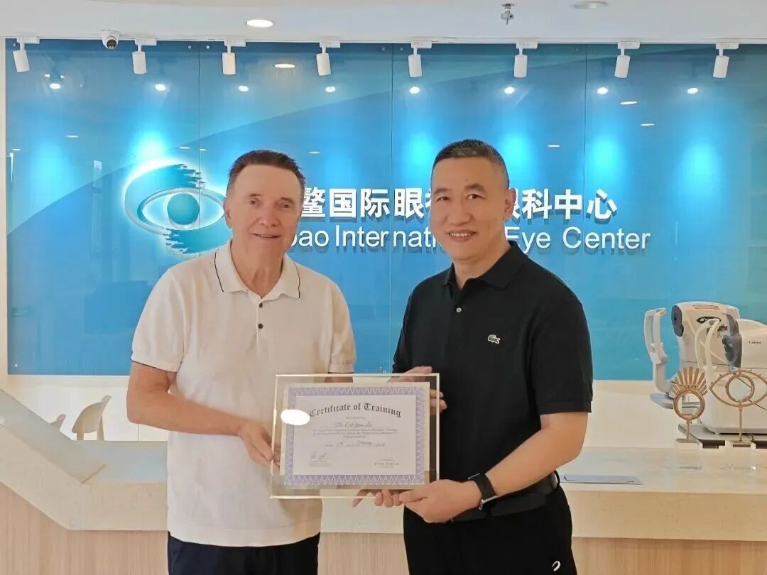 隨后,Vladimir Feingold博士為劉才遠教授頒發(fā)“Presbia FM微透鏡老視矯正國際認證醫(yī)師”證書。