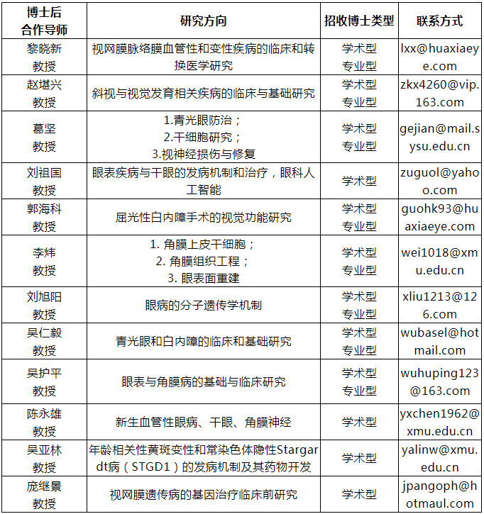 國家臨床重點(diǎn)專(zhuān)科、國家藥物臨床試驗機構、福建省眼科與視覺(jué)科學(xué)重點(diǎn)實(shí)驗室、福建省臨床重點(diǎn)專(zhuān)科、廈門(mén)市領(lǐng)先學(xué)科,是新加坡全國眼科中心的姐妹中心,并設有國家博士后科研工作站、院士專(zhuān)家工作站、基礎研究所、轉化醫學(xué)研究所等,擁有“全國眼底病會(huì )診中心”、 “全國白內障手術(shù)培訓基地”、全國住院醫師規培基地、全國 “疑難眼病名醫會(huì )診平臺”以及醫聯(lián)體“遠程會(huì )診中心”等重要臨床培訓研究平臺。