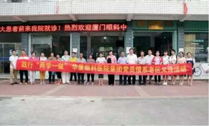 2016年6月25日,在紀念中國共產(chǎn)黨誕辰95周年之際,結合“兩學(xué)一做”,集團黨委開(kāi)展“重走紅軍路,送醫到老區”活動(dòng)。華廈眼科醫院集團黨委書(shū)記陳寶貴組織全體黨員到閩西革命老區龍巖連城新泉鎮,慰問(wèn)當地眼疾困難戶(hù),并為300多位眼疾患者做篩查,深受老區群眾贊譽(yù);