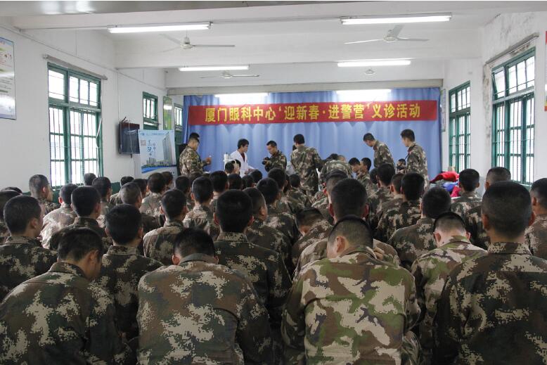 1月29日下午,廈門(mén)眼科中心眼表與角膜病專(zhuān)家一行9人冒著(zhù)冬雨到翔安武警邊防支隊機動(dòng)大隊,開(kāi)展“迎新春 送健康”健康咨詢(xún)、義診活動(dòng),并為邊防支隊武警贈送了進(jìn)口眼藥水。廈門(mén)眼科中心以實(shí)際行動(dòng)提前為武警邊防支隊致以新春祝福與問(wèn)候,并送去了健康。義診現場(chǎng)氣氛十分熱烈,義診從下午三點(diǎn)半一直持續到下午六點(diǎn),為近百名武警做了眼體檢。