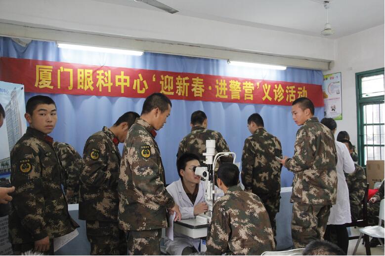 廈門(mén)眼科中心董諾博士為武警檢查眼睛