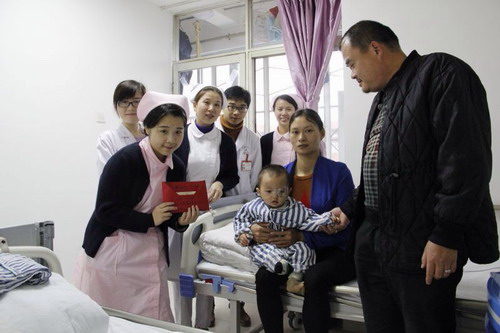 由于小燦寶家境不好,全家九口人,上面有年邁的爺爺奶奶,加上小燦寶兩兄弟,小燦寶媽媽要照顧兩個(gè)年幼的孩子無(wú)法工作,另外,小燦寶大伯幾年前去世,小燦寶大伯母離家未歸,大伯家的三個(gè)孩子也是小燦寶父母代為照顧,九口人只有小燦寶爸爸工作養家。護士梁嘉惠了解到情況后,與護士長(cháng)陳秋蓮商量在微信朋友圈發(fā)起愛(ài)心捐款。經(jīng)過(guò)三天募集,一共募集到9926元善款。
