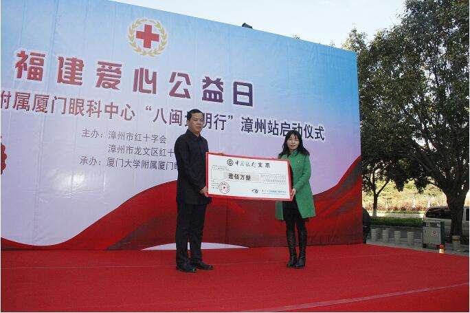 啟動(dòng)儀式上廈門(mén)大學(xué)附屬廈門(mén)眼科中心向漳州市紅十字會(huì )捐贈100萬(wàn)元,并成立“漳州市紅十字光明專(zhuān)項基金”,基金主要用于漳州貧困眼疾患者的救助工作。此外,當天活動(dòng)現場(chǎng),來(lái)自廈門(mén)眼科中心的數名眼科專(zhuān)家還為從漳州各地前來(lái)參加活動(dòng)的百名民眾進(jìn)行了“眼病義診篩查”。