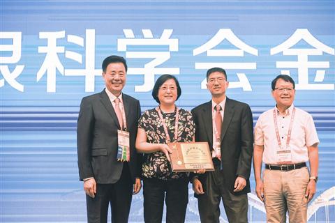 ▲黎曉新總院長(cháng)榮獲中美眼科學(xué)會(huì )“金鑰匙獎”(左二為黎曉新)