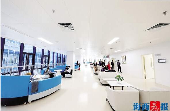 現代化的裝修、暖綠暖黃為主色調的環(huán)境讓人眼前一亮??剖议T(mén)診和住院樓層各種指引標識清晰明確,隨處可見(jiàn)溫馨提示,還有志愿導引人員。階梯形前臺,讓坐在輪椅上也能與醫務(wù)人員無(wú)障礙溝通。等候就診時(shí),你可以在按摩椅上來(lái)一場(chǎng)放松之旅,也可以漫步VIP候診區長(cháng)廊欣賞名畫(huà)。在休息區,休閑吧和兒童游樂(lè )區等可以緩解診療時(shí)帶來(lái)的陌生感和緊張感。同時(shí),五緣院區還配有超千個(gè)地面、地下停車(chē)位,方便“有車(chē)一族”到院泊車(chē)。