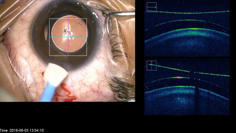 廈門(mén)大學(xué)附屬廈門(mén)眼科中心總院長(cháng)黎曉新教授已使用該術(shù)中OCT完成了不少眼底手術(shù),她以黃斑手術(shù)為例介紹說(shuō),作為視網(wǎng)膜重要的結構,黃斑手術(shù)的精密度要求非常高。在黃斑裂孔手術(shù)中,術(shù)中OCT可以實(shí)時(shí)監控整個(gè)過(guò)程,核心步驟完成,可以立即掃描,觀(guān)察OCT來(lái)評估手術(shù)作用,預測術(shù)后恢復,對于手術(shù)起到重大的保障和提高,使得手術(shù)質(zhì)量得到跨越式地提升。