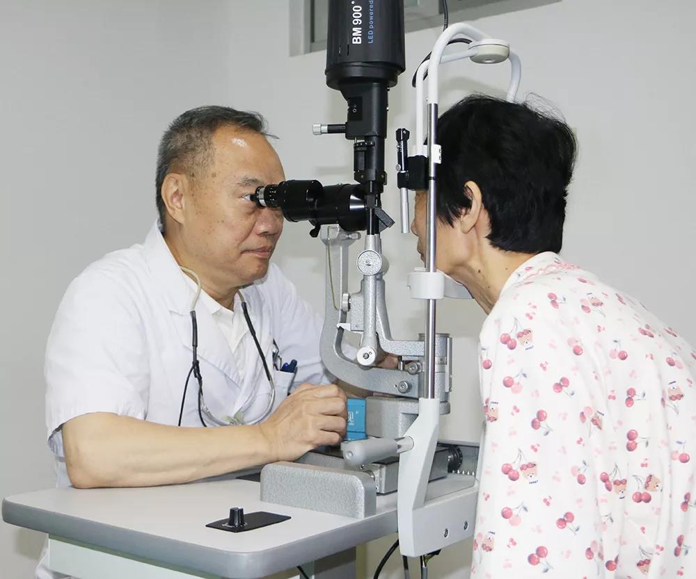 廈門(mén)眼科中心業(yè)務(wù)院長(cháng)、眼底病專(zhuān)科主任吳國基為患者做檢查。