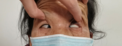 坐在謝仁藝博士面前的劉阿婆,左眼眼皮耷拉下垂,無(wú)法自主睜眼。用手把眼皮撐開(kāi),只見(jiàn)雙眼的黑眼珠都嚴重向內向下偏移,左眼眶里的黑眼珠更是只余一小塊黑點(diǎn),幾乎已快要“消失不見(jiàn)”。