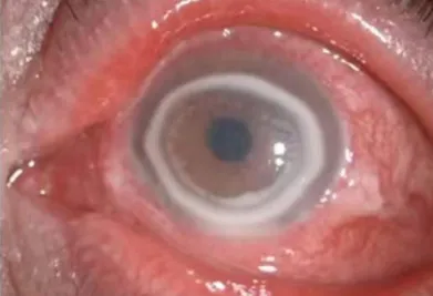眼表與角膜病科學(xué)科帶頭人吳護平主任醫師在初診時(shí),發(fā)現蘇師傅左眼的視力僅有0.3,通過(guò)裂隙燈和角膜熒光染色檢查,可以看到蘇師傅的角膜有明顯的炎癥性病變,炎癥細胞已經(jīng)浸潤到角膜組織中,形成了一個(gè)環(huán)狀浸潤,角膜上皮大面積破損,出現了水腫和潰瘍。