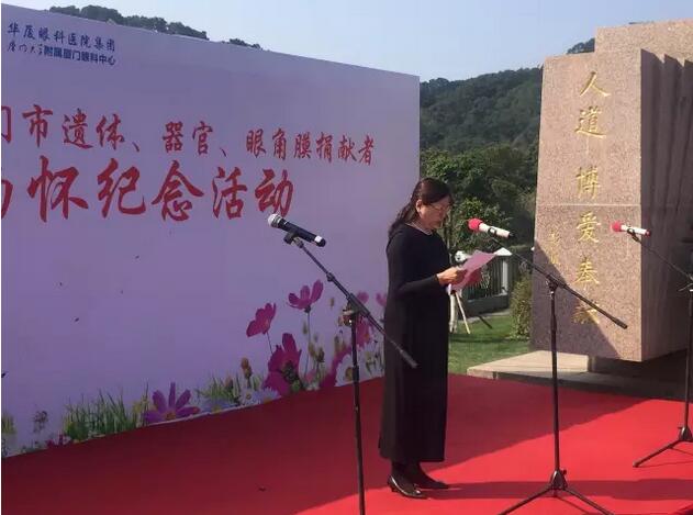 廈門(mén)大學(xué)附屬廈門(mén)眼科中心是福建省眼角膜捐獻指定的接收機構。廈門(mén)大學(xué)附屬廈門(mén)眼科中心黨委書(shū)記陳逸恬在緬懷儀式上致辭,表達對生命的理性思考,對捐獻者偉大人格的崇敬之情。同時(shí)希望“人道、博愛(ài)、奉獻”的紅十字精神越來(lái)越被廣大愛(ài)心市民所接受和推崇,也希望更多的角膜盲患者能重獲光明,開(kāi)啟新的生活。