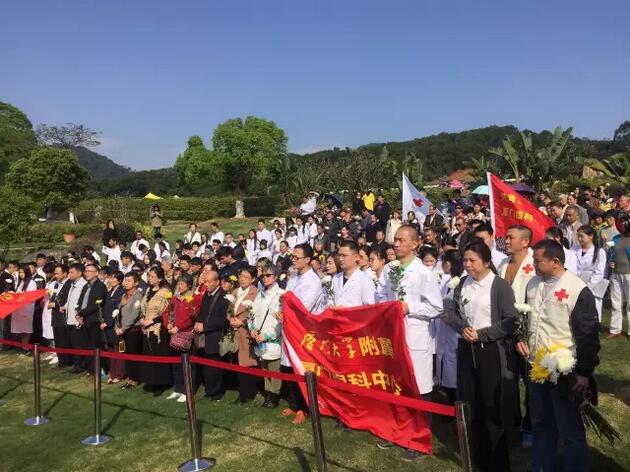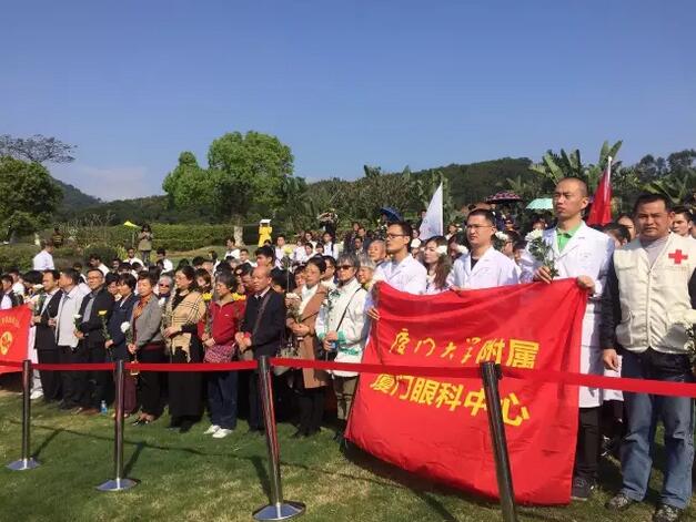 4月1日上午,廈門(mén)市紅十字會(huì )聯(lián)合廈門(mén)大學(xué)附屬廈門(mén)眼科中心在海滄文圃山陵園組織的2017年廈門(mén)市遺體與器官(組織)捐獻者緬懷紀念活動(dòng)順利舉行。捐獻者家屬、捐獻志愿者代表,廈門(mén)市紅十字會(huì )黨組書(shū)記、常務(wù)副會(huì )長(cháng)蘇蘇,廈門(mén)市紅十字會(huì )副會(huì )長(cháng)兼秘書(shū)長(cháng)俞娟,廈門(mén)市衛計委醫政醫管處處長(cháng)陳糧,廈門(mén)大學(xué)附屬廈門(mén)眼科中心黨委書(shū)記陳逸恬,以及廈門(mén)海滄文圃山陵園開(kāi)發(fā)有限公司、廈門(mén)大學(xué)醫學(xué)院、廈門(mén)醫學(xué)院、廈門(mén)大學(xué)附屬廈門(mén)眼科中心以及各區紅十字會(huì )代表共300余人參加了活動(dòng)。