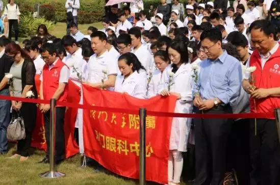 藍天下,清風(fēng)徐來(lái),菊香陣陣。4月4日上午,在廈門(mén)海滄文圃山紀念園里,廈門(mén)市衛計委、民政局、廈門(mén)市紅十字會(huì )、廈門(mén)眼科中心的工作人員與廈大醫學(xué)院、廈門(mén)醫學(xué)院的學(xué)生,以及捐獻者家屬、捐獻志愿者代表等300余人集體緬懷廈門(mén)市遺體、器官、眼角膜捐獻者,感恩他們的無(wú)私贈予,幫助生者能夠享受生命,擁有光明。
