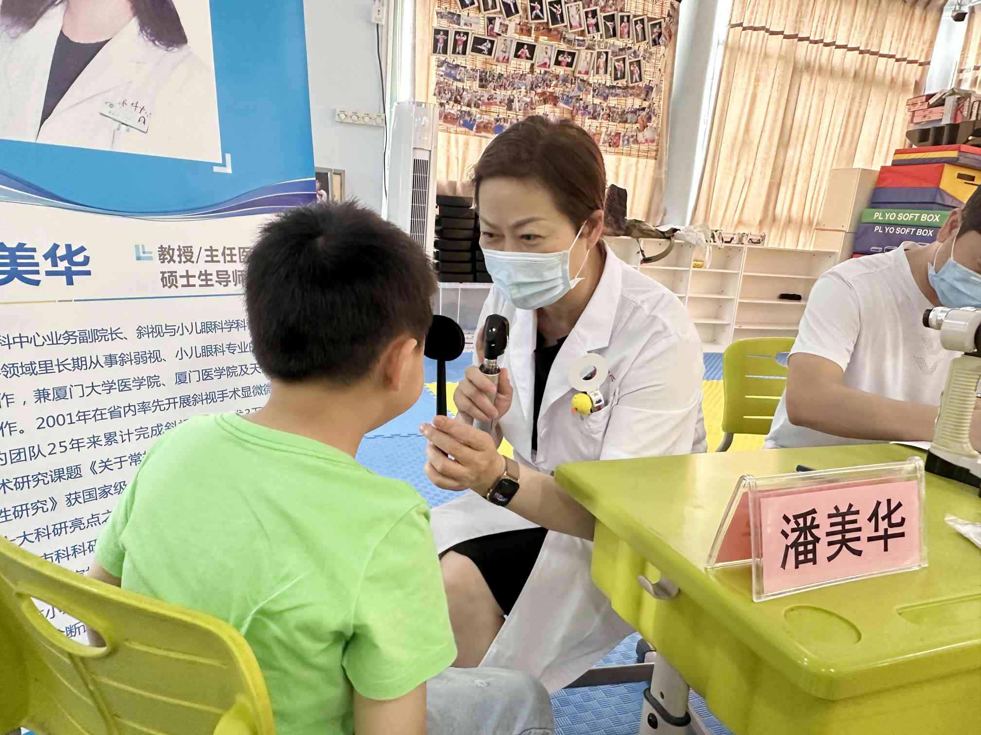近日,為守護特需兒童的光明未來(lái),在廈門(mén)市「愛(ài)心廈門(mén)」建設工作領(lǐng)導小組辦公室及海滄區殘疾人聯(lián)合會(huì )的指導下,廈門(mén)眼科中心「看見(jiàn)幸?!寡劢】倒骓椖恐驹刚叻?wù)隊在業(yè)務(wù)副院長(cháng)、斜視與小兒眼病中心學(xué)科帶頭人潘美華教授的帶領(lǐng)下,來(lái)到了海滄區小海星特殊兒童服務(wù)中心,為特需兒童們開(kāi)展了一場(chǎng)特殊的眼健康公益篩查診療活動(dòng)。