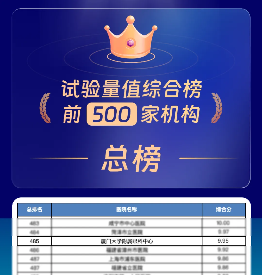 近日,新一年度的《全國GCP機構藥物臨床試驗量值排行榜》正式發(fā)布,廈門(mén)眼科中心再次入列全國排行榜單!
