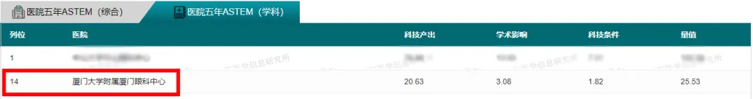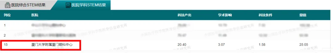 此次廈門(mén)眼科中心同時(shí)收獲兩份榜單前十五名,充分凸顯了廈門(mén)眼科中心在科研創(chuàng )新方面的成績(jì),也是我院科研創(chuàng )新成果留下亮眼足跡,并獲業(yè)內廣泛認可的證明。