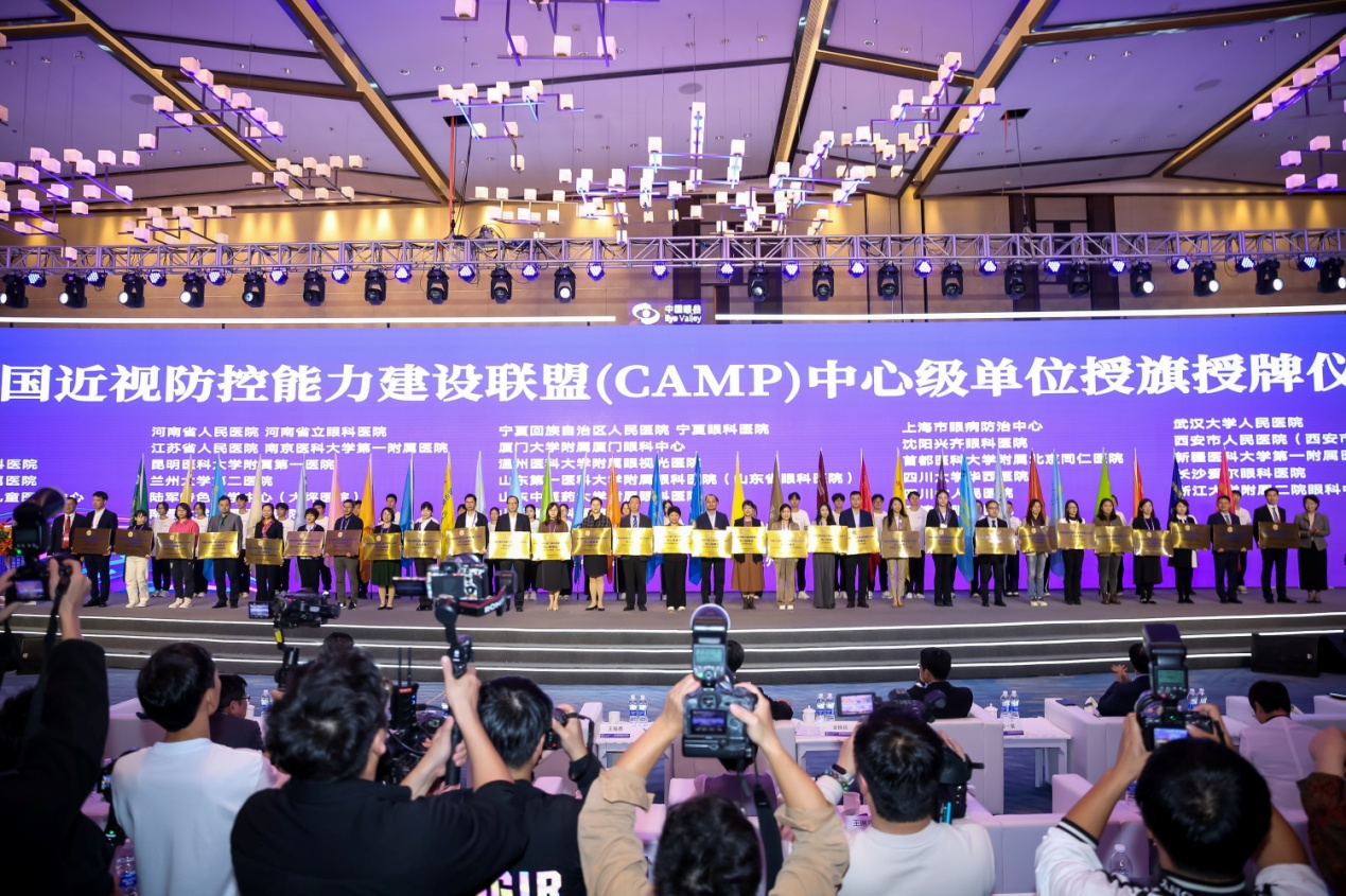 ▲ 中國近視防控能力建設聯(lián)盟中心級單位授牌授旗儀式