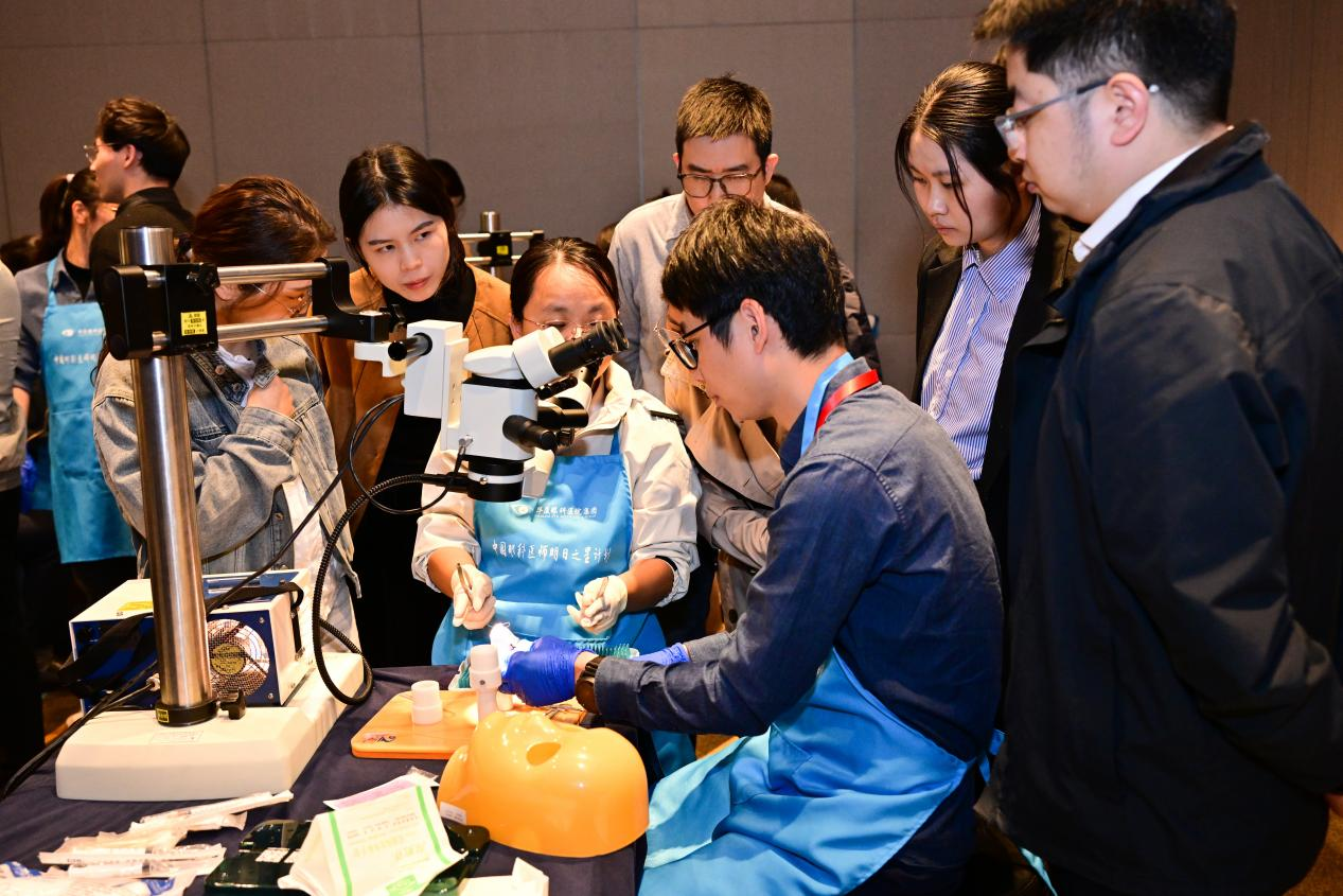 斜視手術(shù)wetlab實(shí)操培訓吸引了諸多眼科同仁到場(chǎng)參與體驗。廈門(mén)眼科中心斜視與小兒眼科的主任醫師謝仁藝,副主任醫師楊梅、何歡、王海燕為學(xué)員們一對一講解了斜視手術(shù)的操作要點(diǎn)、技巧,手把手指導學(xué)員在動(dòng)物眼上實(shí)操,大大提升了學(xué)員們的斜視手術(shù)技能。