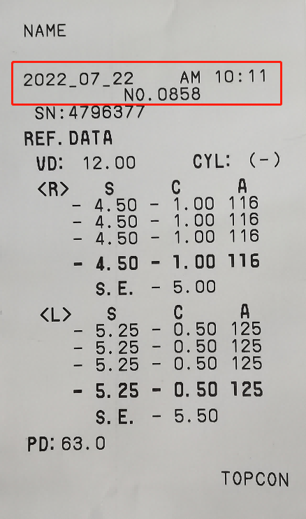 在驗光單開(kāi)頭,有檢查的日期時(shí)間、編號信息
