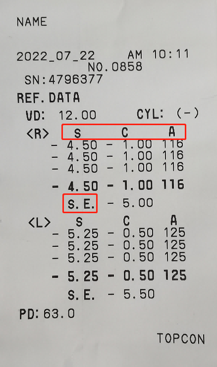 S.E.是指等效球鏡(S.E.=近視度數+1/2散光度數),為了保證檢查結果的準確性,每只眼睛的檢測一般會(huì )連測3次,zui后的結果是取3次檢測結果的平均值,就是建議矯正的屈光度數,僅具有參考價(jià)值。