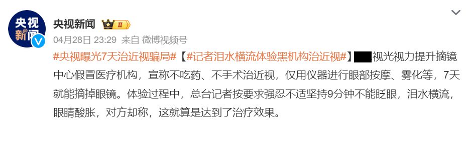 近日,某視光視力提升摘鏡中心”的機構自稱(chēng)在全國400多個(gè)城市有1600多家門(mén)店,宣稱(chēng)不吃藥、不手術(shù)治近視,僅僅用他們研制的“神藥”“神秘儀器”進(jìn)行眼部的按摩、涂抹、霧化等,7天就能摘掉眼鏡。